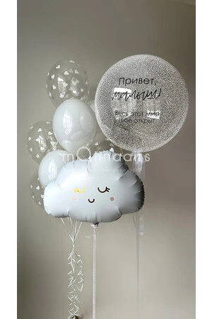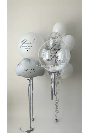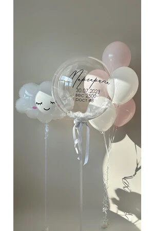 Набор гелиевых шаров на выписку с облаком и прозрачным шаром № 3231
