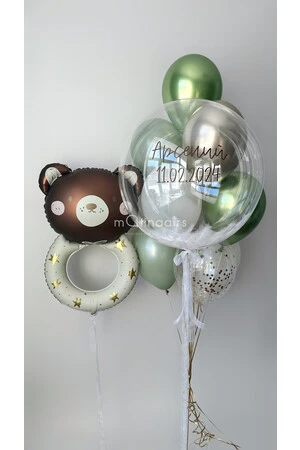 Набор шаров на выписку мальчика с мишкой и прозрачным шаром №3282