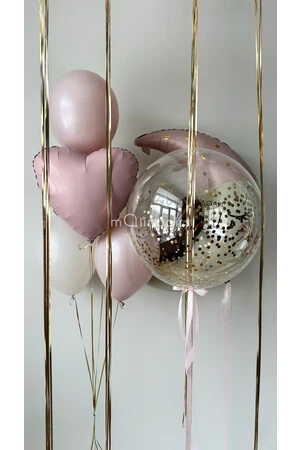 Набор гелиевых шаров с прозрачным шаром на день рождения девушки №2950