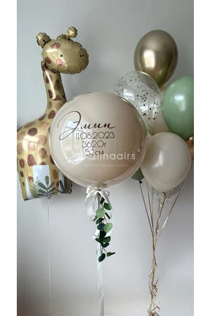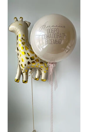 Набор гелиевых шаров на выписку с жирафом и большим шаром №3248