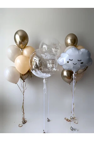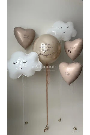 Набор гелиевых шаров в бежевом цвете с облаками на выписку №3239