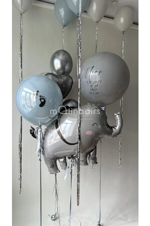 Набор шаров на выписку мальчика со слоником в голубом и серебряном цвете №3221