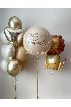 Набор гелиевых шаров на выписку мальчика со львом № 3219
