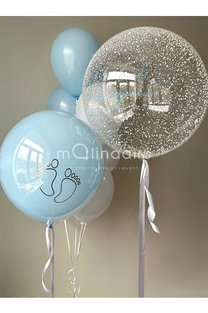 Набор гелиевых шаров на выписку для мальчика в голубом и белом цвете №3232