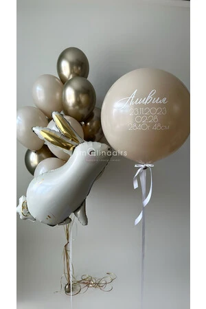 Набор гелиевых шаров на выписку с зайкой в бежевом цвете №3264