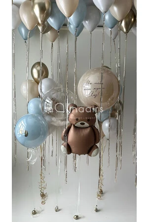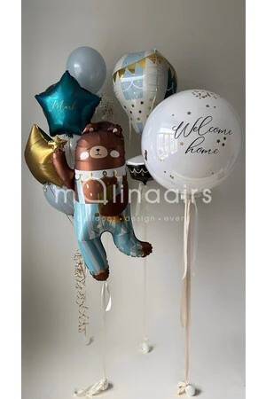 Набор гелиевых шаров на выписку мальчика с мишкой № 3281