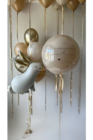 Набор гелиевых шаров на выписку с зайкой в бежевых тонах №3259