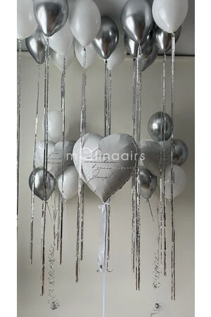 Набор гелиевых шаров с большим сердцем в белом и серебряном цвете №2973