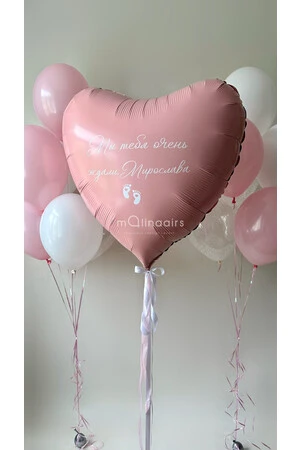 Набор шаров на выписку с большим розовым сердцем на выписку девочки №3271