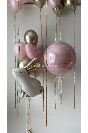 Набор гелиевых шаров на выписку для девочки с зайчиком №3283