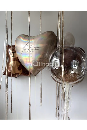 Набор гелиевых шаров с большим шаром и связкой в розовом и бежевом цвете №2018