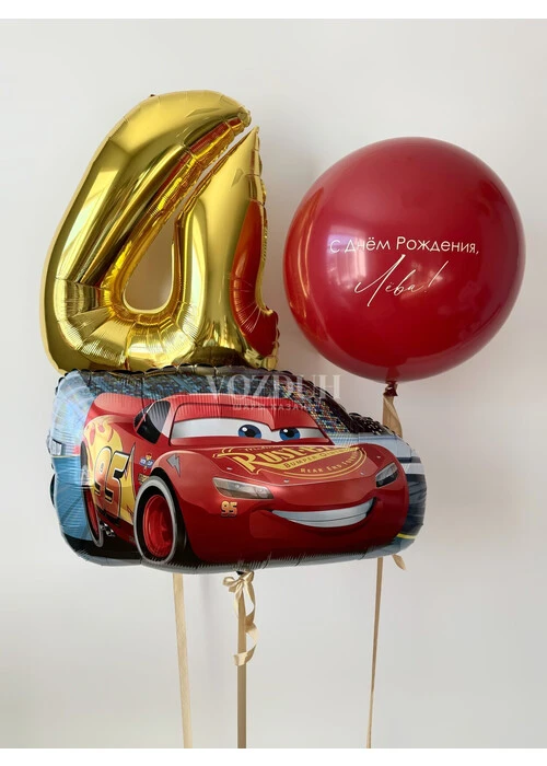 Набор гелиевых шаров мальчика с машиной и золотой цифрой №2014 — отзывы
