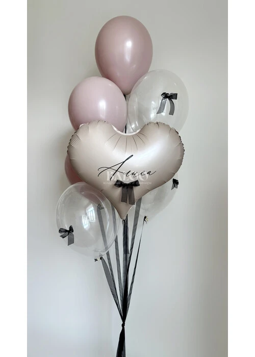 * Связка из 7 латексных шаров с бантиками, фольгированного сердца с бантом и с индивидуальной надписью