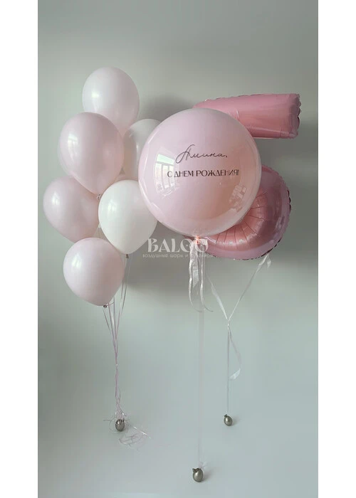 Набор гелиевых шаров с розовой цифрой и большим шаром для девочки №2036