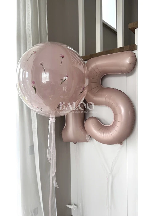 Набор шаров с розовыми цифрами и большим шаром с наклейками-цветами №2040 — отзывы