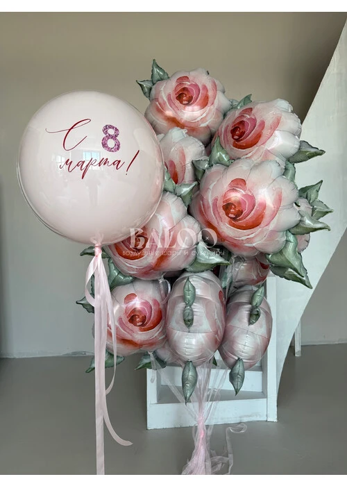 Набор гелиевых воздушных шаров на 8 марта с розами и большим шаром №0178 — отзывы