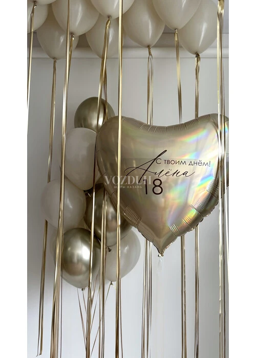 * Воздушный фольгированный гелиевый шар в виде сердца с индивидуальной надписью.