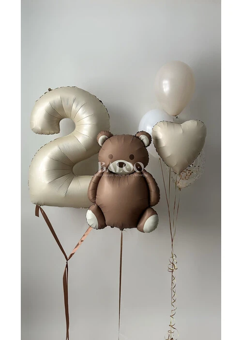 Набор гелиевых шаров с мишкой и бежевой цифрой на день рождения №2962