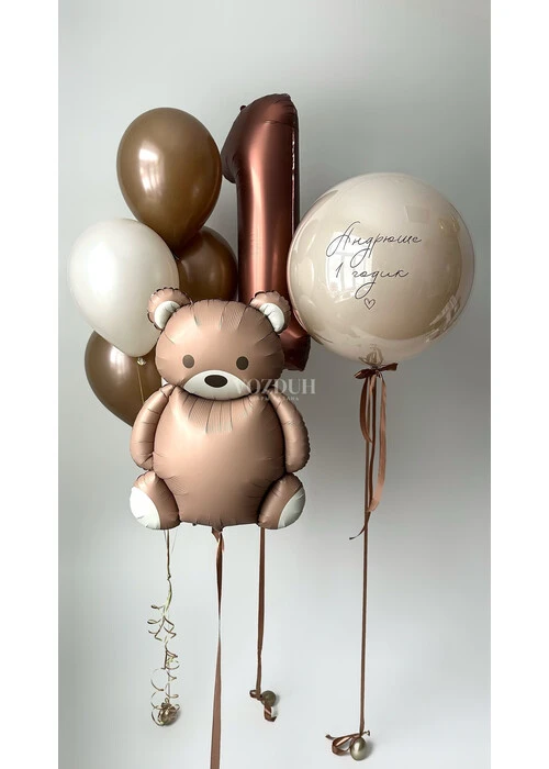 Набор гелиевых шаров с мишкой на годик на день рождения №2989