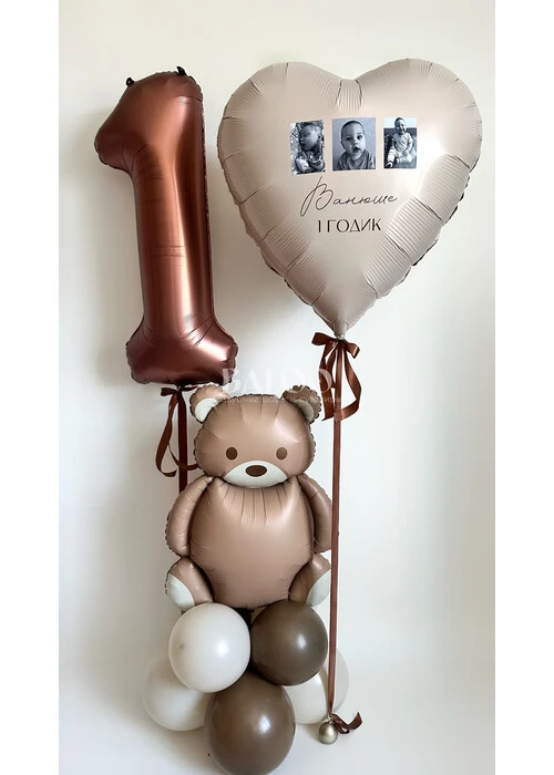 Набор гелиевых шаров на годик с мишкой и шаром с фото №2996 — отзывы