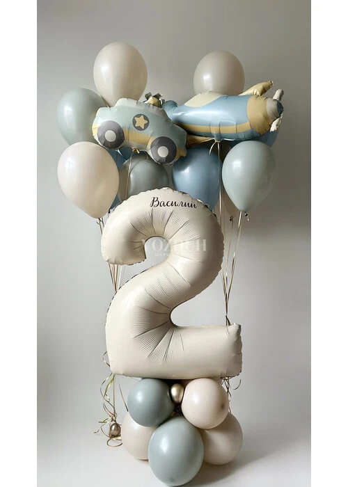 * Фольгированная цифра 2 с индивидуальной надписью на подставке из латексных гелиевых шаров