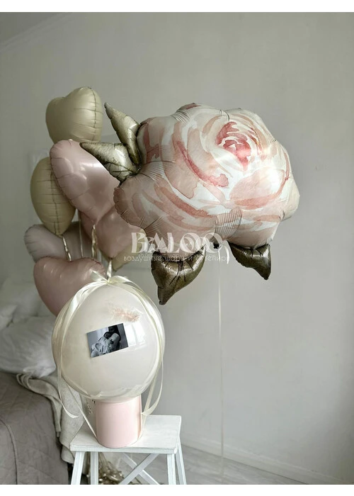 Набор гелиевых шаров с цветком и боксом для мамы №1