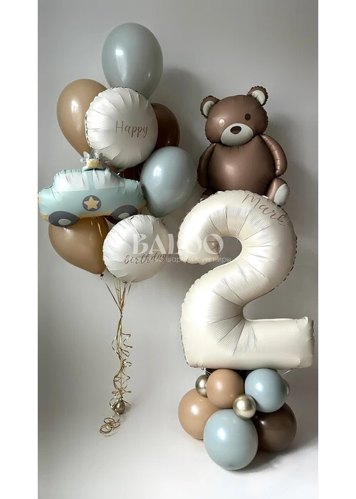 Набор шаров с мишкой, машинкой и цифрой на подставке на день рождения №3049 — отзывы