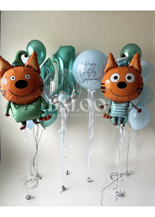 Набор шаров Три кота с Компотом.и Коржиком на день рождения мальчика №3059