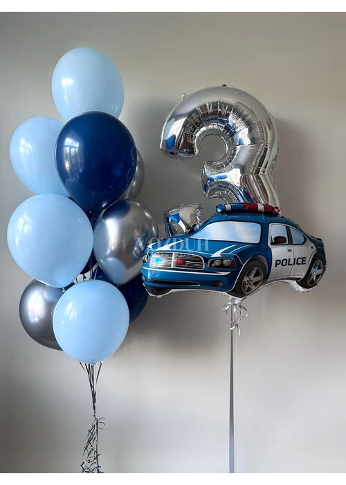Набор гелиевых шаров с полицейской машиной на день рождения мальчика №3105