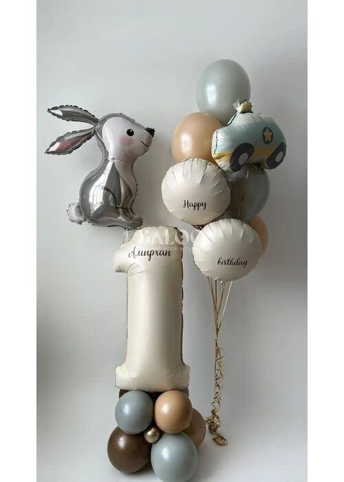 Набор гелиевых шаров с зайчиком и бежевой цифрой с именем на подставке №3109 — отзывы