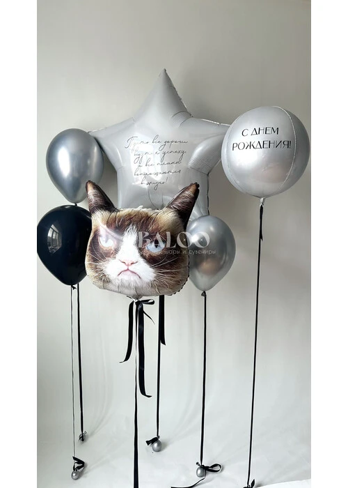Набор гелиевых шаров с котом и большой звездой на день рождения мужчины №3131 — отзывы