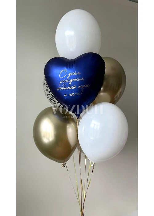 * Связка из 6 латексных гелиевых шаров с добавлением фольгированного сердца с надписью.