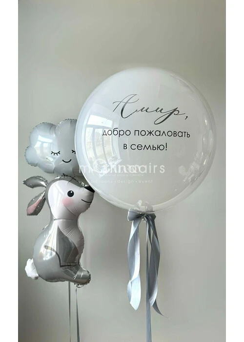 Набор шаров с зайчиком, облачком и большим шаром на выписку №3225