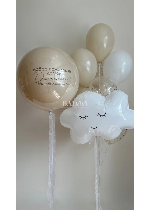 Набор гелиевых шаров на выписку в бежевом цвете с облаком №3161 — отзывы