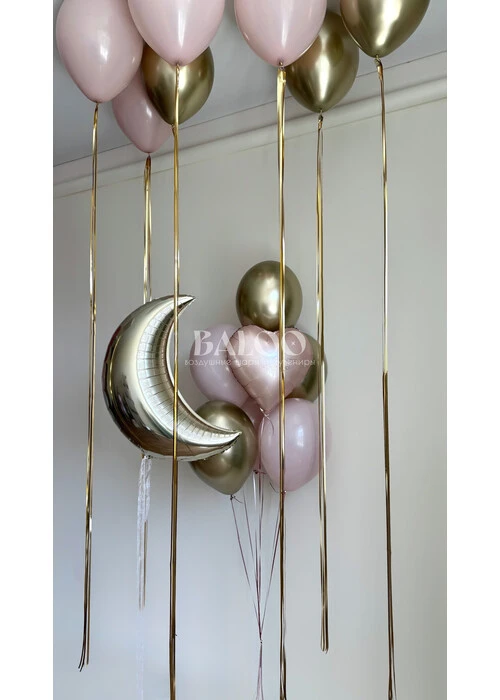 Набор гелиевых шаров на выписку с золотым полумесяцем для девочки №3164 — отзывы