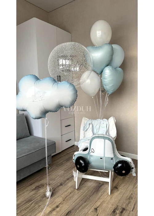 Набор гелиевых шаров на выписку мальчика с машинкой и облачком №3165 — отзывы