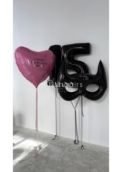 Набор с черными цифрами, маской и большим сердцем для девочки и подростка №7440