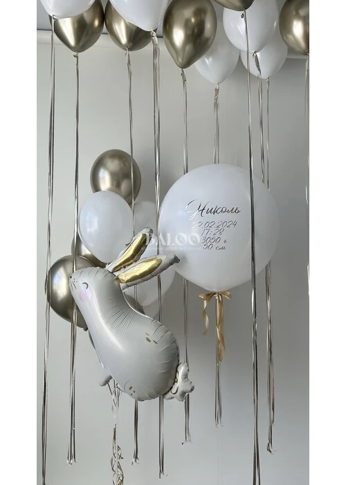 Набор гелиевых шаров на выписку с зайчиком №3202