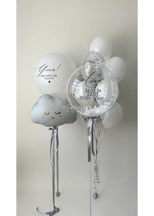 Набор гелиевых шаров на выписку с облачком в белом цвете №3207 — отзывы