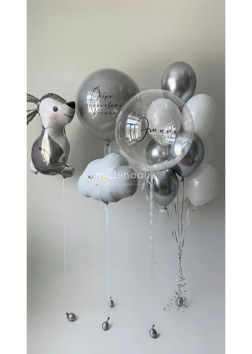 Набор гелиевых шаров на выписку с зайкой и облаком №3209 — отзывы