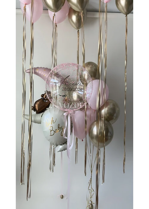 Набор гелиевых шаров на выписку с мишкой на луне для девочки №3210 — отзывы