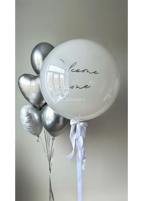 Набор гелиевых шаров в белом и серебряном цвете на выписку №3224 — отзывы