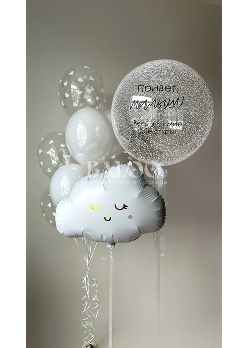 Набор гелиевых шаров на выписку с облаком и прозрачным шаром № 3231 — отзывы
