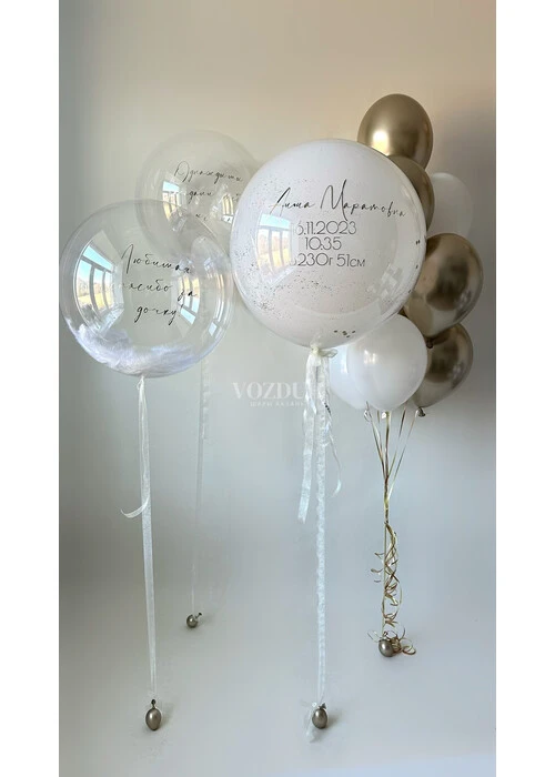 * Два воздушных латексных гелиевых шар-баблс 24 дюйма с индивидуальной надписью и наполнением перья