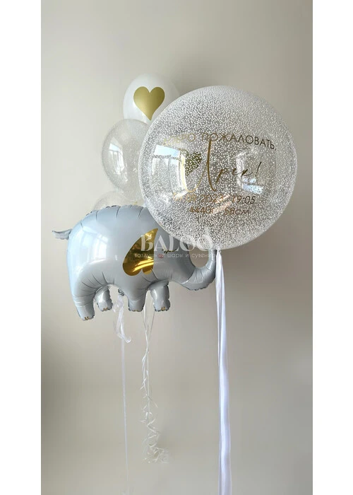 Набор гелиевых шаров на выписку со слоником №3254