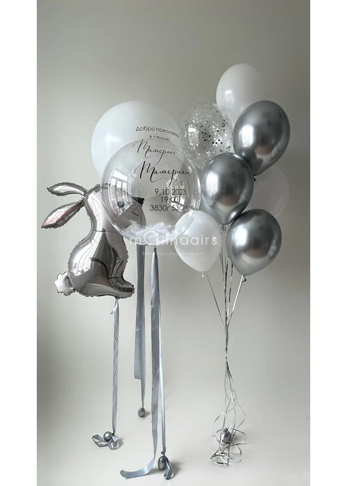 Набор гелиевых шаров на выписку с зайчиком №3255