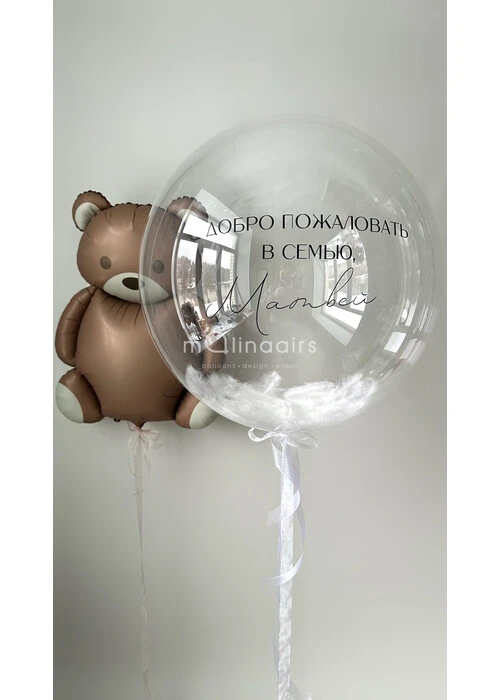 Набор шаров на выписку мальчика с мишкой и прозрачным шаром №3282 — отзывы
