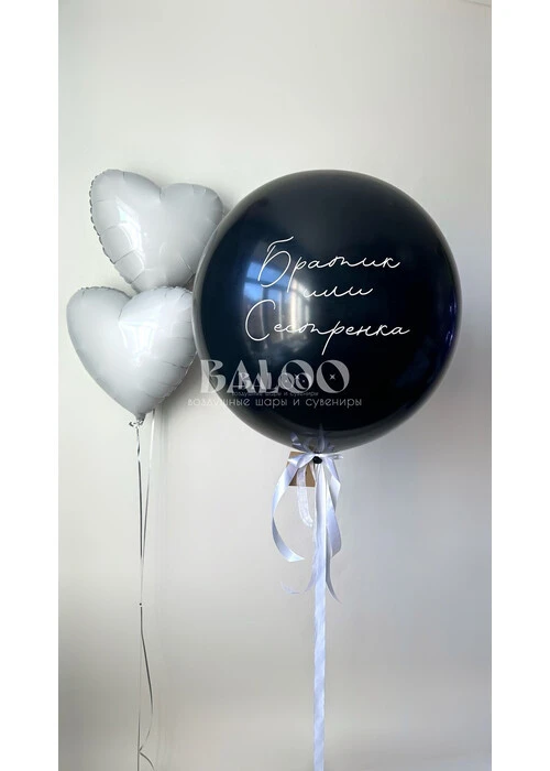 Набор шаров на гендер-пати с большим черным шаром и сердцами №3430 — отзывы