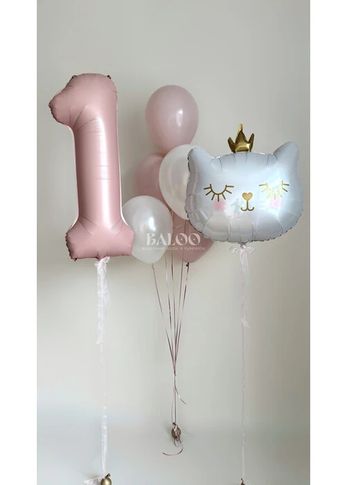 Набор гелиевых шаров для девочки с кошкой на день рождения №3289 — отзывы