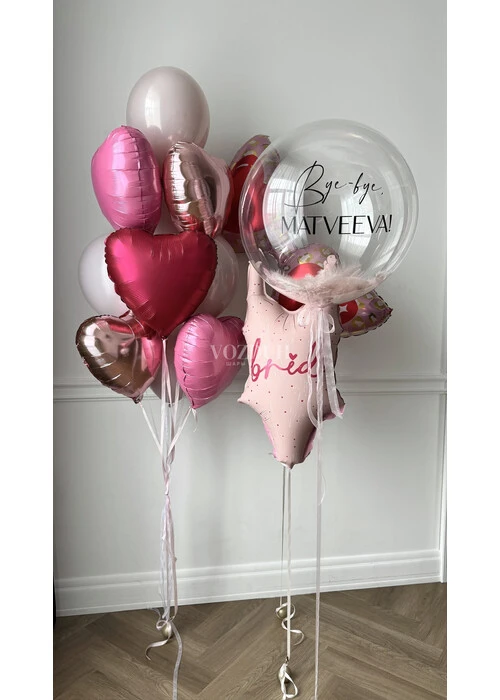 В состав набора воздушных и гелиевых шаров на девичник входит: